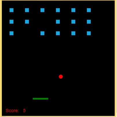 This video game demonstrates how the Breakout (or Brick Breaker) game can be modeled. The game employs an animation cycle to keep the shot from the base moving towards (and colliding) with the bricks. Various functions are used to identify collisions and render the new status of the screen. Boundary checks are provided to allow the shot to bounce off the top of the screen and continue to knock out the remaining bricks. Further enhancements could include additional key presses to affect the size and capability of the base, or to make the bricks move constants horizontally.