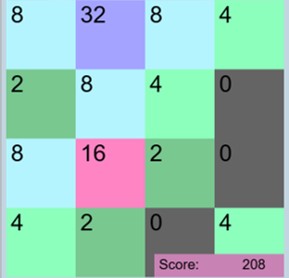This game is based solely on keypress inputs from the arrow keys. The player uses arrow keys to combine blocks of the same number into a higher power of 2. Each arrow stroke also introduces a new number (generally 2 or 4) onto the board. The game is played until one square has the number 2048 or no adjacent squares have the same number. State management is supported by an underlying two-dimensional array. A challenging enhancement would be for the computer to select the arrow keys and see the progress that can be made to reaching 2048 with random moves. The exercise demonstrates how games can be designed to be totally dependent on the event handlers.