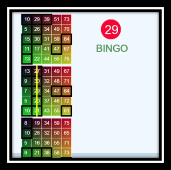 The Bingo exercise plays this traditional game automatically over 3 player boards. Numbers are chosen and player boards are dynamically updated. The card information is kept in a three dimensional array. The main function has a very clear set of function call that will manage the game. Enhancements to the game include duplicate numbers not being called during Bingo, although the generation of cards includes checking for duplicates. Enhancements would include modifying colors and cosmetic, adding more boards to a game, and changing the terms of winning to be the entire card.